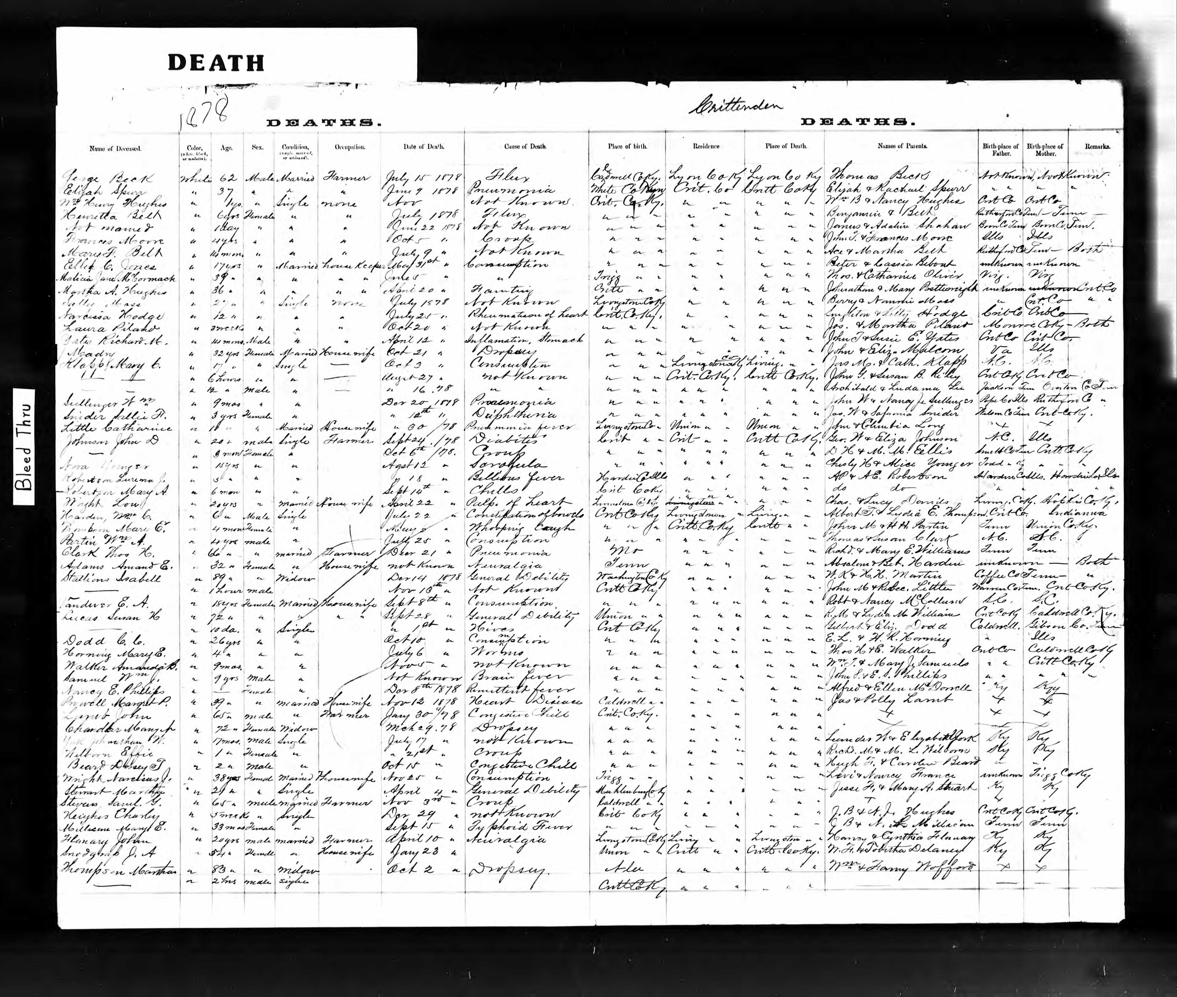 a.i.a. Amanda E. is married aged of 23 years old the saturday 30 may 1868 in Crittenden County, Kentucky, USA with Joel Adams aged of 18 years old, son of unknown father and mother. He was born the friday 30 november 1849 in Kentucky, USA.
