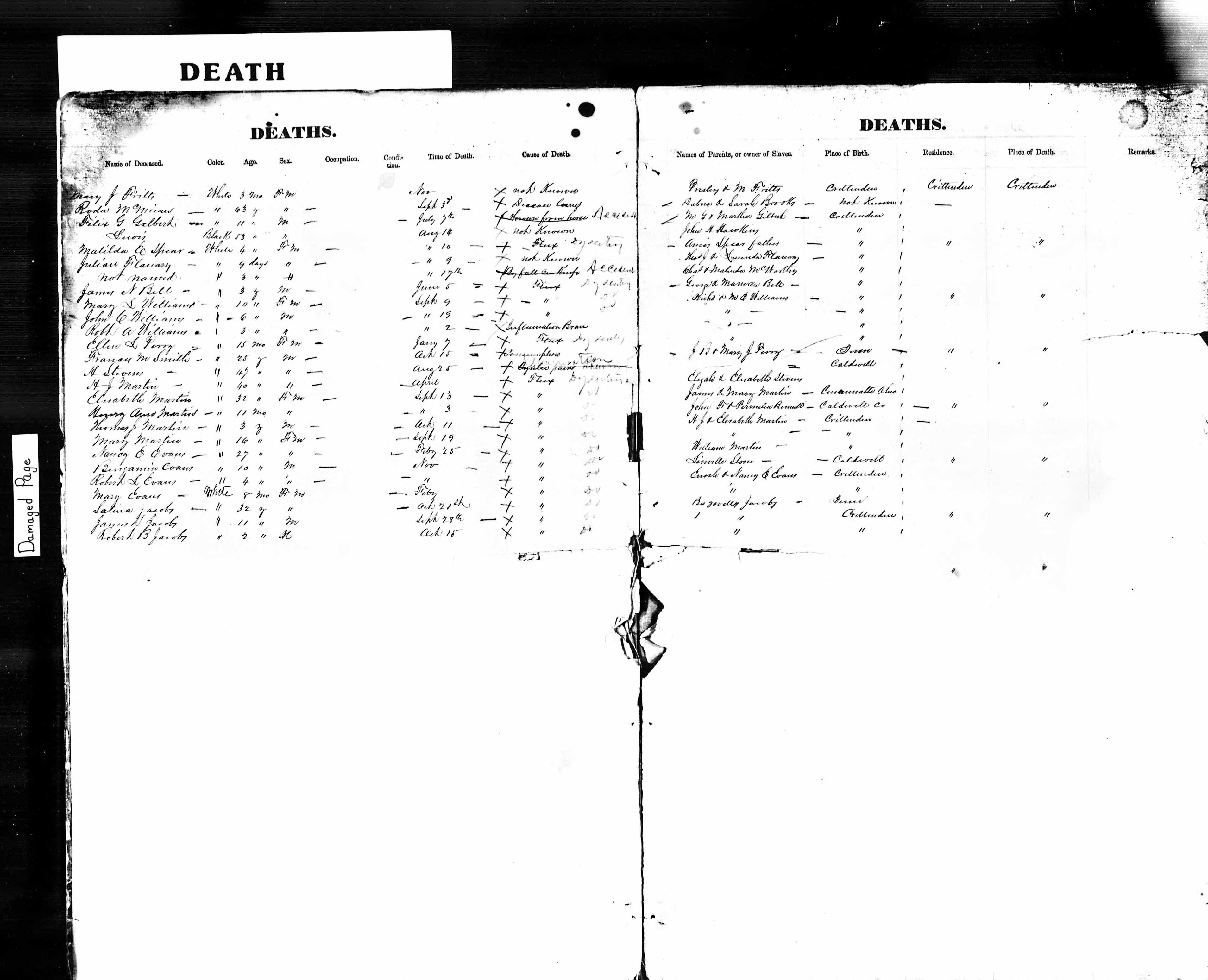 Mary L. Williams and John C. Williams Death