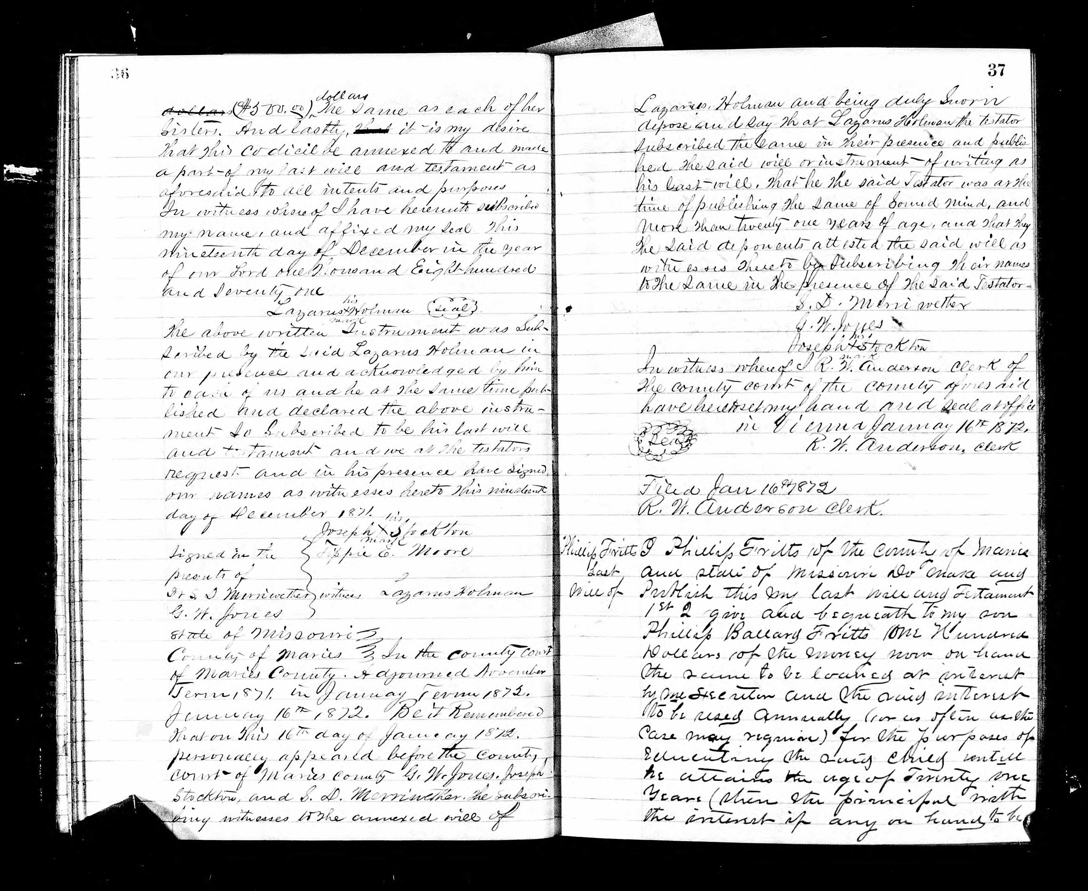 Will and Testament Phillip Fritts F442